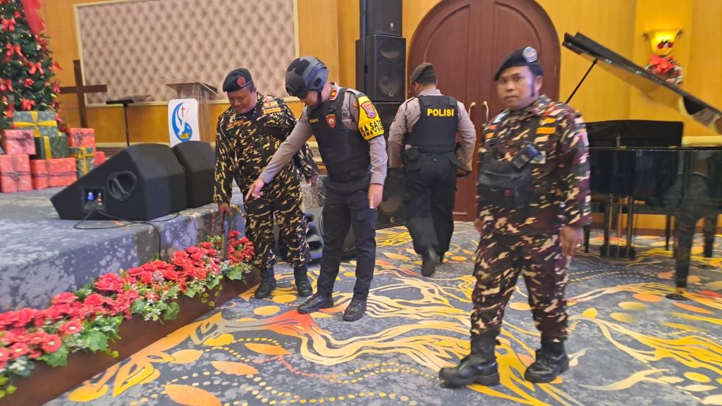 Situbondo – Barisan Ansor Serbaguna (Banser) Gerakan Pemuda Ansor Situbondo turut membantu Kepolisian Republik Indonesia (POLRI) dalam pengamanan ibadah dan perayaan Natal bertema “Kekuatan Menghadapi Masa Depan” yang dilaksanakan di salah satu gereja di Kecamatan Panji Kabupaten Situbondo, Minggu malam Senin (21/12/2025) pukul 18.00 WIB.