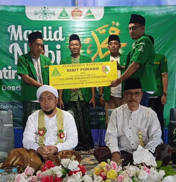 Dalam rangka memperingati Maulid Nabi Muhammad SAW, Gerakan Pemuda Ansor Desa Kayumas Kecamatan Arjasa menggelar kegiatan keagamaan dengan semangat kebersamaan. Kegiatan tersebut tidak hanya berfokus pada peringatan kelahiran Nabi Muhammad SAW, tetapi juga disertai dengan langkah nyata dalam rangka memperkuat kemandirian ekonomi organisasi melalui penyerahan simbolis bibit tanaman Porang dari Pimpinan Cabang (PC) Gerakan Pemuda Ansor Situbondo kepada Pimpinan Ranting (PR) Gerakan Pemuda Ansor Kayumas.